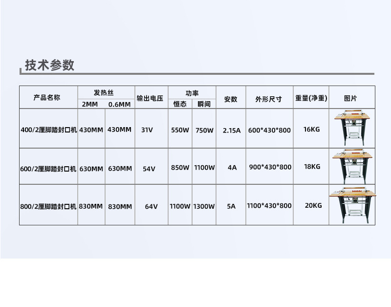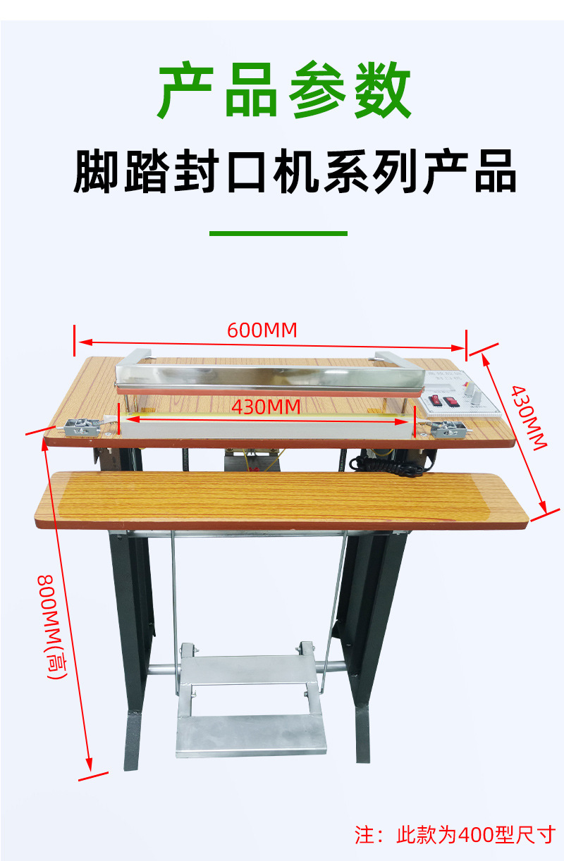 - 操作簡單方便:通過腳踏方式控制封口動作,操作直觀、容易掌握。不需要復(fù)雜的電氣控制知識,操作人員可以快速上手。這種簡單的操作方式尤其適合小型企業(yè)、商鋪或家庭作坊等對包裝設(shè)備操作要求不高的場所。