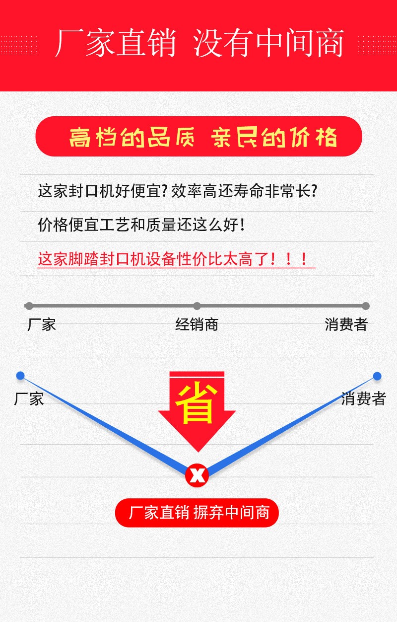 - 價(jià)格相對較低:相比一些自動化程度高、功能復(fù)雜的封口機(jī),腳踏封口機(jī)的結(jié)構(gòu)簡單,成本較低,價(jià)格也比較實(shí)惠。這使得它在一些預(yù)算有限的用戶中具有較高的吸引力。