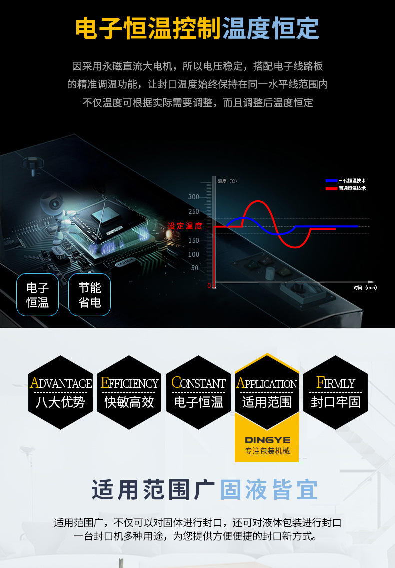 溫度控制精準度影響封口質量,優質的連續式封口機有精確的溫度控制系統和快速的升溫降溫能力,能在不同材質和厚度的袋子封口時,保證封口牢固且美觀,無變形、漏封等問題 。