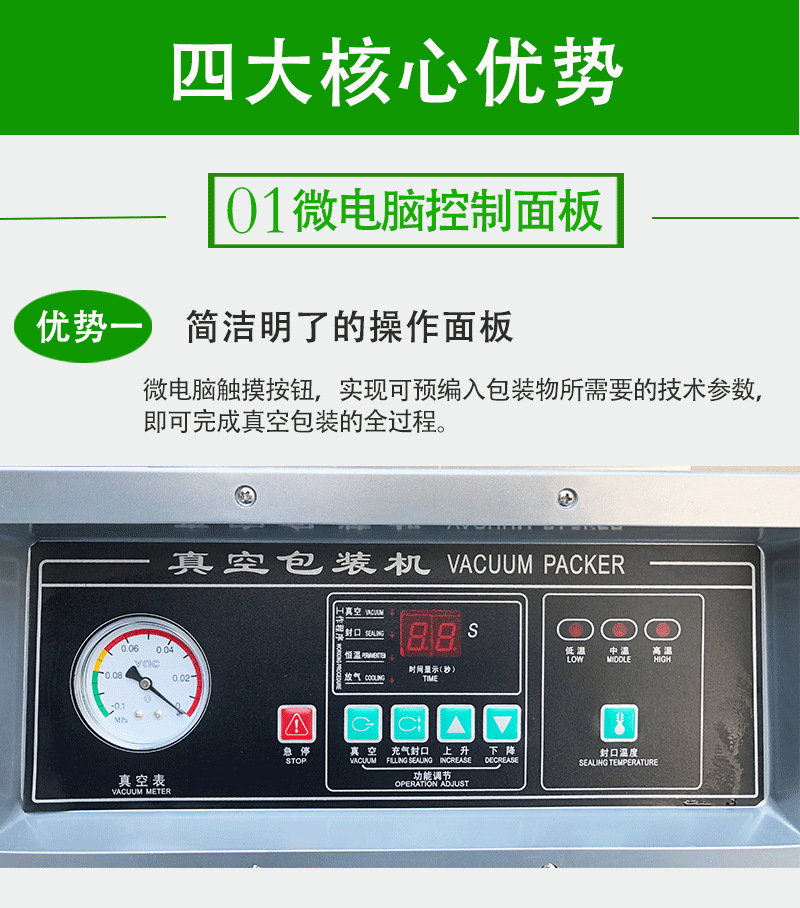 單室內抽真空包裝機可對酸菜、粽子、五金配件等產品抽真空封口包裝,密封包裝延長保質期