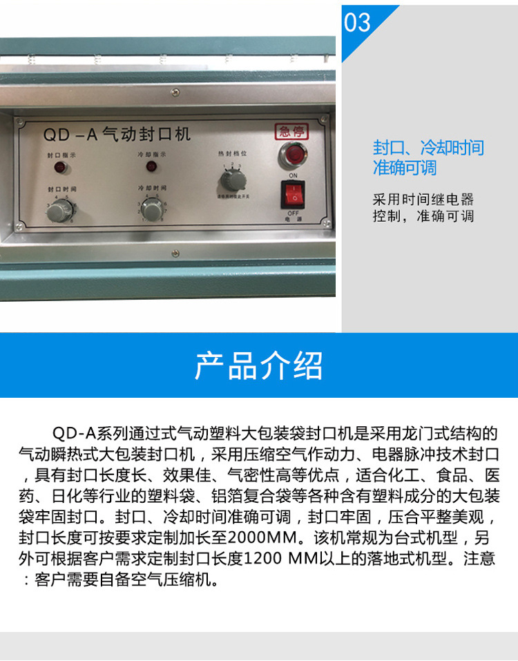 • 藥品包裝:無論是片劑、膠囊、粉劑還是液體藥品,臺式氣動封口機都能對相應的包裝進行封口,保證藥品的密封性和穩定性,防止藥品受潮、受污染,符合藥品包裝的嚴格要求。