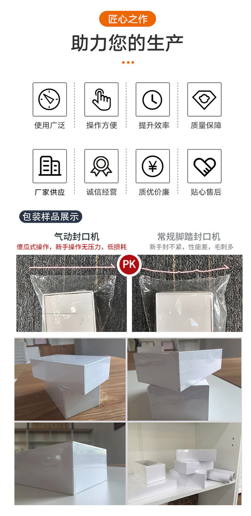- 原理:足夠且均勻的壓力能使包裝材料在加熱時(shí)充分接觸并融合,同時(shí)保證封口的平整度。壓力不足,封口處可能無法完全密封,出現(xiàn)漏縫;壓力過大,可能會(huì)使包裝材料變形、損壞,甚至影響封口機(jī)的使用壽命。
