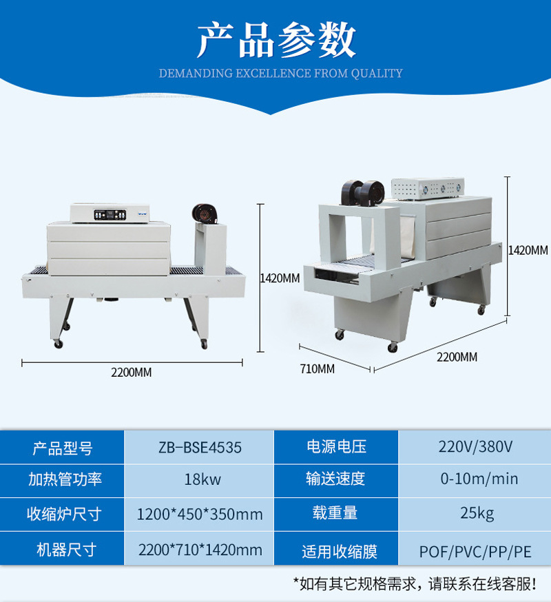 熱收縮包裝機(jī)的類(lèi)型多樣。按自動(dòng)化程度可分為手動(dòng)、半自動(dòng)和全自動(dòng);按加熱方式有熱風(fēng)循環(huán)式、紅外線(xiàn)加熱式等;按適用范圍還可分為小型桌面式和大型工業(yè)式。