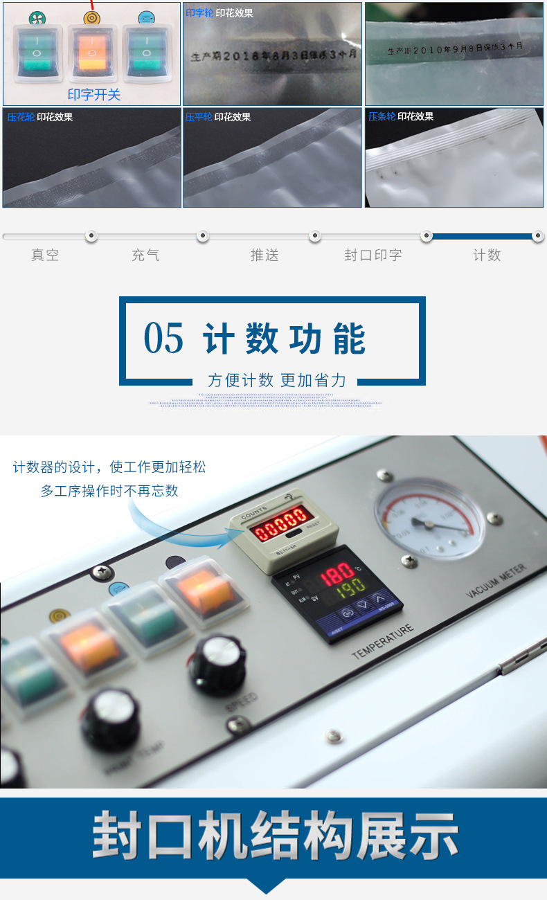 • 節省人力成本:操作人員只需將產品放置在輸送帶上,設備即可自動完成抽真空、封口等一系列包裝操作,大大減少了人工操作環節,降低了勞動強度和人力成本,同時也降低了人為因素對包裝質量的影響.