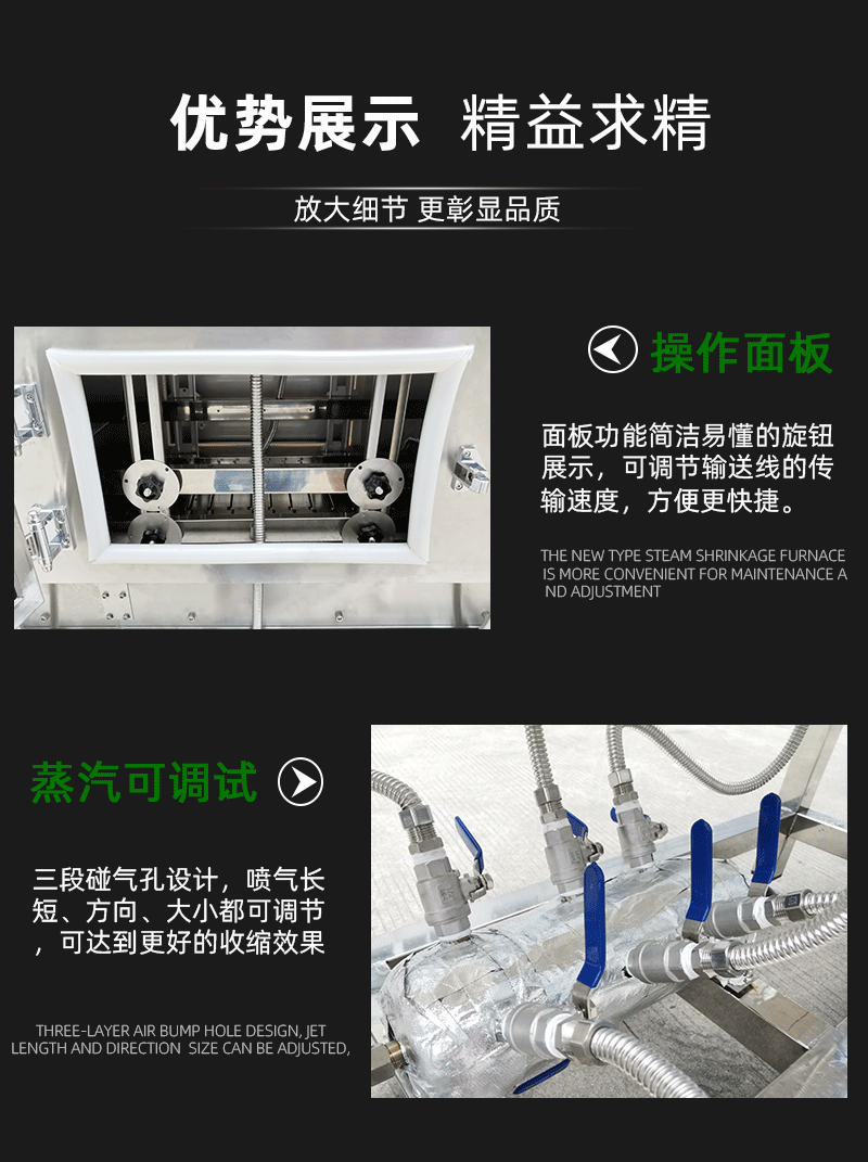 - 藥品質量保護至關重要:在醫藥包裝中,蒸汽收縮機主要用于保護藥品質量。藥品對溫度、濕度和光照等環境因素較為敏感,因此包裝過程需要嚴格控制蒸汽溫度和收縮時間,避免藥品受到高溫影響而失效。例如,對于一些疫苗等生物制品,包裝過程中的溫度控制精度可能需要達到 ±1℃以內。