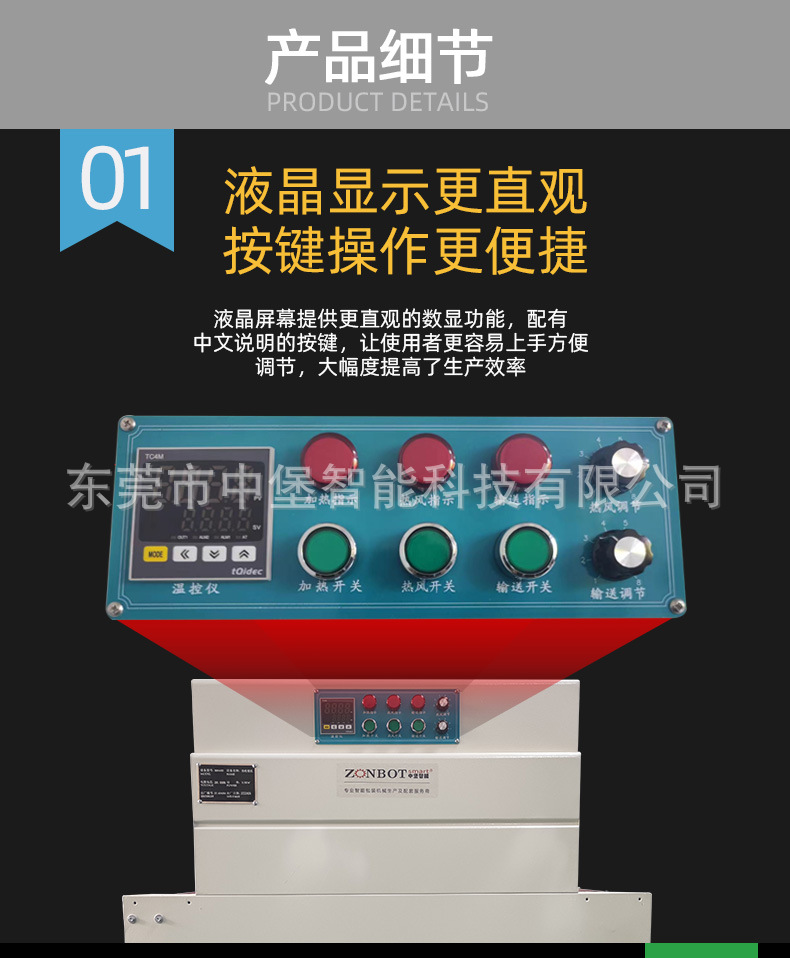 - 將包裹好薄膜的產品放置在輸送帶上,輸送帶將產品送入加熱通道。在加熱通道中,薄膜受熱開始收縮。此時,操作人員要注意觀察收縮情況,確保薄膜均勻收縮。如果發現薄膜有局部未收縮好的情況,可能是加熱不均勻或者產品放置位置不當導致的,需要及時調整。