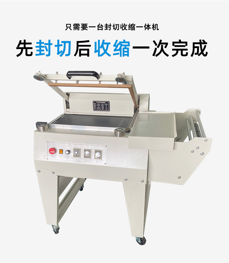 • 啟動設備后,人工先將產品放置到輸送帶上指定位置,輸送帶把產品輸送至封切區域。隨后,機器的封切裝置按照預設的溫度、時間與壓力參數,對覆蓋產品的熱收縮膜進行封切,將膜切斷并封口,讓產品裹上包裝膜。完成封切后,包裝好的產品再由人工取下,或是放到后續的收縮工序設備上,進行下一步熱收縮包裝處理。