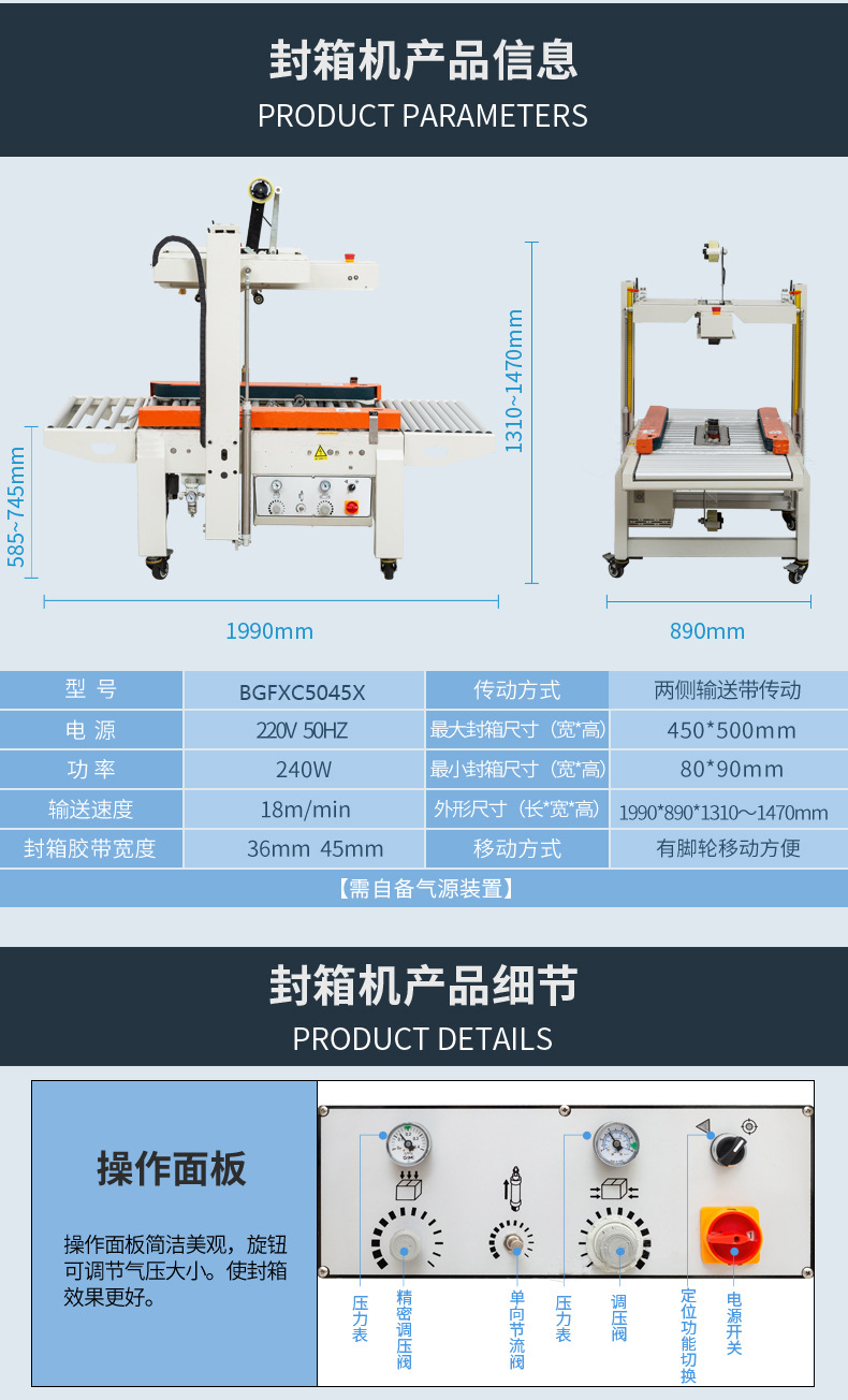 - 封箱尺寸:不同型號(hào)的封箱機(jī)封箱尺寸范圍不同,最大封箱尺寸可達(dá)到 500mm×600mm,最小封箱尺寸可至 140mm×150mm 1 。