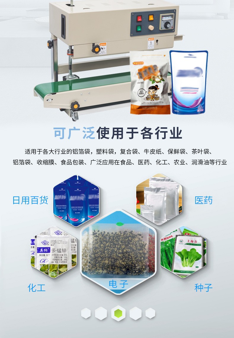 - 適用場景:對于一些扁平狀、寬度較大或者需要連續批量封口的包裝產品,臥式使用更為便捷。比如,在食品行業中對扁平的餅干包裝袋、薯片包裝袋等進行封口,或者在日化行業中對扁平的化妝品盒、牙膏盒等進行封口,臥式封口機能夠更好地適應這些產品的形狀和生產流程。