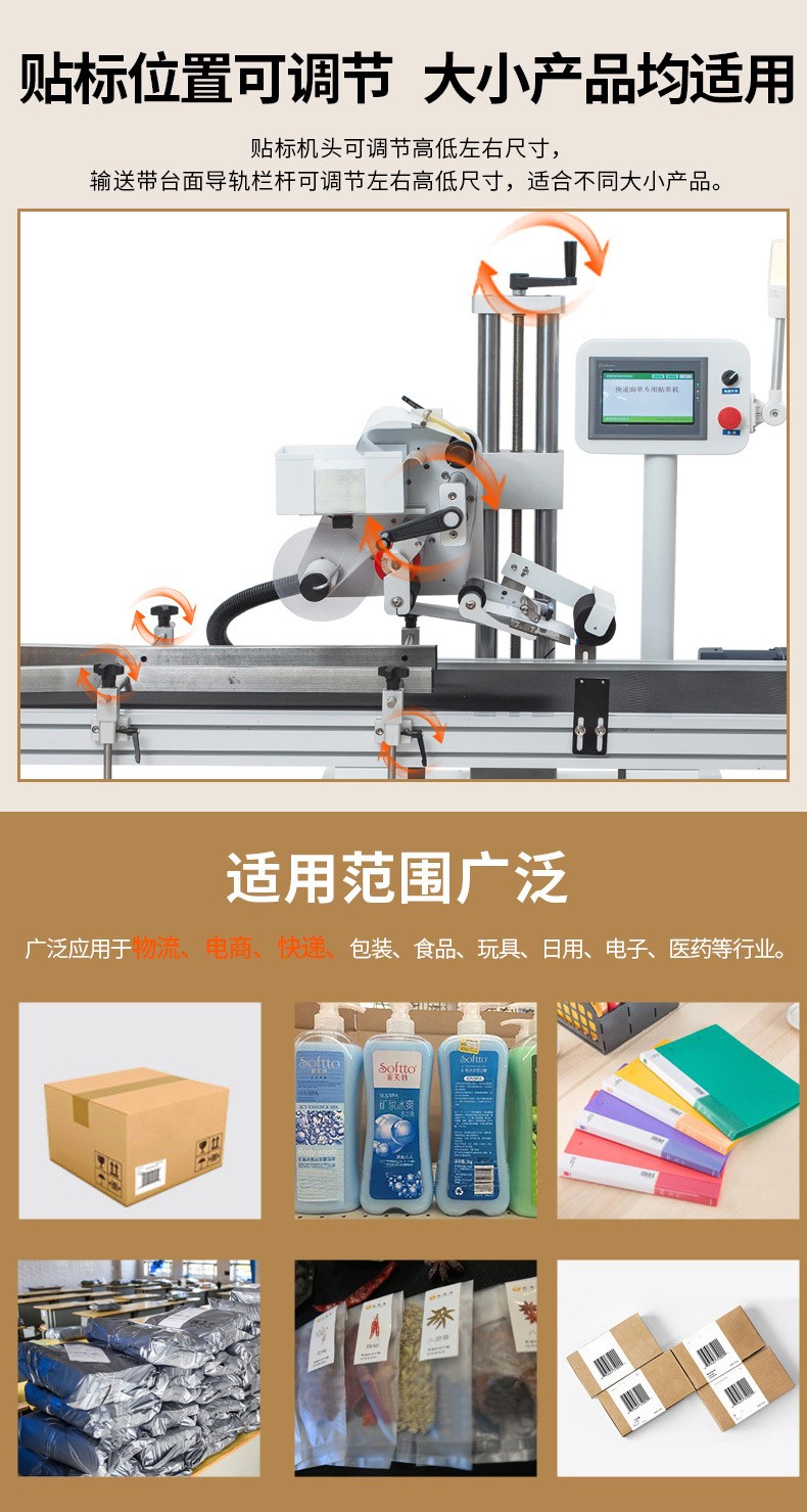 - 可擴(kuò)展性:可以與其他生產(chǎn)設(shè)備進(jìn)行無(wú)縫對(duì)接,組成自動(dòng)化生產(chǎn)線,實(shí)現(xiàn)從產(chǎn)品輸送、貼標(biāo)到后續(xù)包裝等工序的一體化作業(yè)。此外,還可根據(jù)企業(yè)的生產(chǎn)需求進(jìn)行功能擴(kuò)展,如增加噴碼、檢測(cè)等功能模塊,提升設(shè)備的綜合性能和生產(chǎn)能力