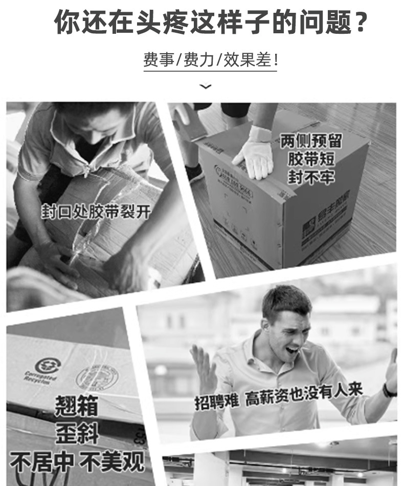 這一自動化連續(xù)作業(yè)模式,極大程度減少了人工操作的時間與勞動強度。以往,人工封箱時,工人需手動將紙箱蓋子逐一折合,再小心翼翼地粘貼膠帶,每完成一個紙箱的封箱,都需耗費一定時間,且頻繁重復性動作易使工人疲憊。而在打包環(huán)節(jié),人工穿帶、拉緊、固定打包帶,不僅操作繁瑣,速度也極為有限。如今,有了全自動封箱打包一體機,工人只需將空紙箱放置在起始輸送帶上,后續(xù)工序均由設備自動完成。據實際數據統(tǒng)計,相較于傳統(tǒng)純人工包裝,使用該一體機后,包裝效率可提升數倍甚至數十倍。例如,在某電商倉庫,以往人工包裝每小時僅能完成幾十件紙箱的封箱打包,而引入全自動封箱打包一體機后,每小時可輕松處理數百件,顯著提升了整體包裝效率,使企業(yè)在單位時間內能夠完成更多訂單的包裝與發(fā)貨任務,極大增強了企業(yè)的市場競爭力