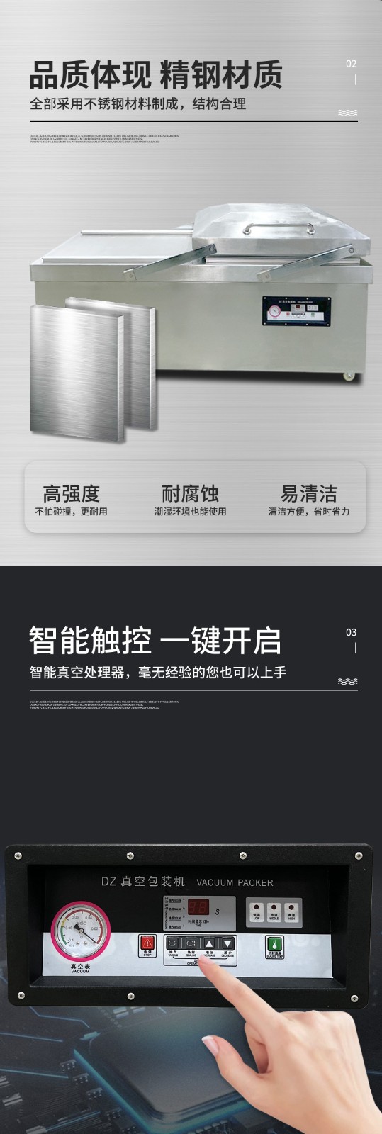 • 按下啟動按鈕,設備開始工作。首先真空泵啟動,對真空室進行抽真空操作,當真空度達到設定值后,抽真空停止,熱封裝置開始工作,對包裝袋進行封口。熱封完成后,真空室恢復常壓,此時可以打開真空室門,取出包裝好的產品。