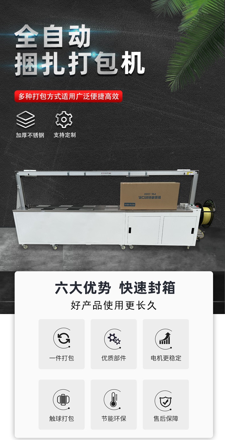 - 全自動打包機:適用于各種大規模生產企業、物流配送中心、電商倉庫等,這些場所每天需要處理大量的打包任務,對打包效率和一致性要求高,能夠充分發揮全自動打包機的優勢,提高工作效率,降低人工成本。