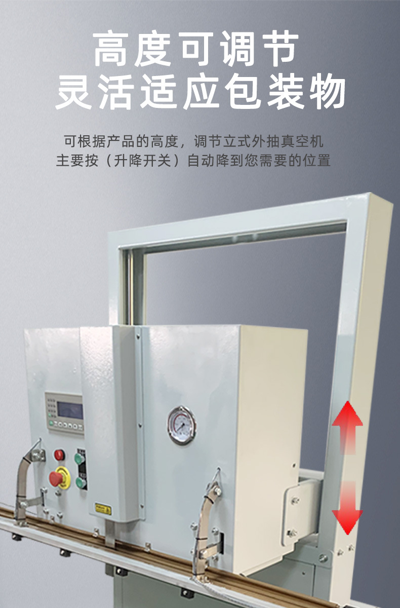 立式外抽真空包裝機(jī)常采用旋片式真空泵等,如工業(yè)級(jí) 1.8 升旋片式真空泵,抽氣力度大,可快速抽出包裝袋內(nèi)的空氣,達(dá)到預(yù)定真空度