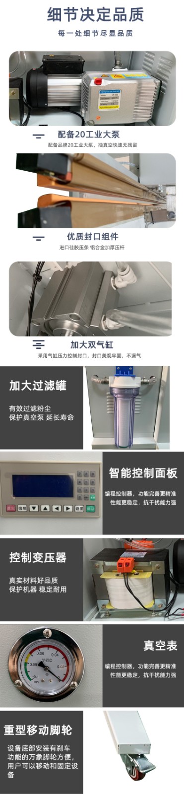 - 電子行業(yè):對(duì)晶片、半導(dǎo)體、IC 等電子產(chǎn)品進(jìn)行真空包裝,起到防潮、防氧化變色等作用,保護(hù)電子產(chǎn)品的性能和質(zhì)量4。