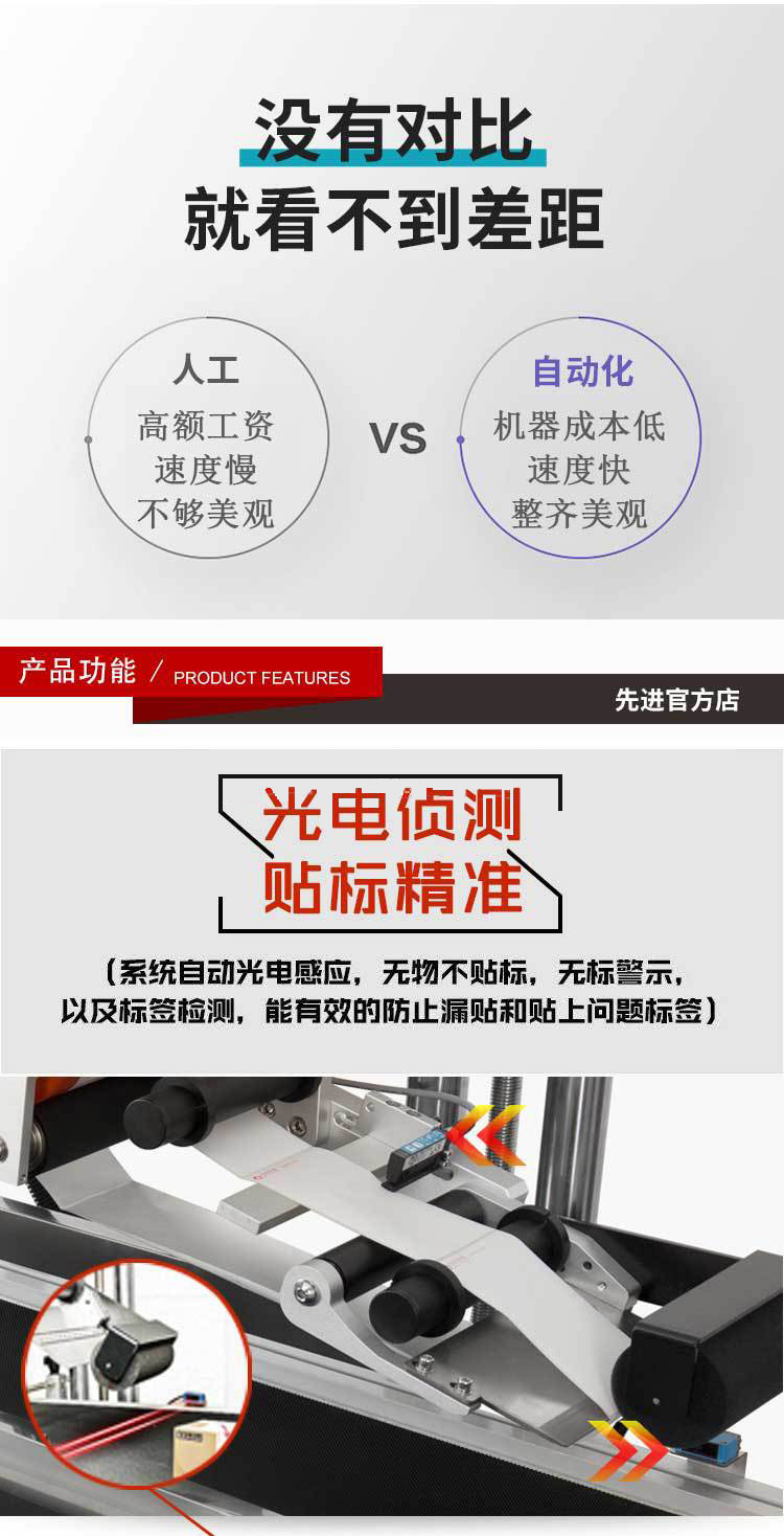 貼標機的適用范圍 1.適用標簽:不干膠標簽、不干膠膜、電子監(jiān)管碼、條形碼等。 2.適用產(chǎn)品:要求在圓周面上貼附標簽或膜的產(chǎn)品,貼標機的適用范圍: 1、平面類貼標機是實現(xiàn)在工件的上平面、上弧面的貼標簽和貼膜,如盒子、書本、塑膠殼等,有滾貼和吸貼兩種方法,主要根據(jù)效率、精度和氣泡要求進行選型