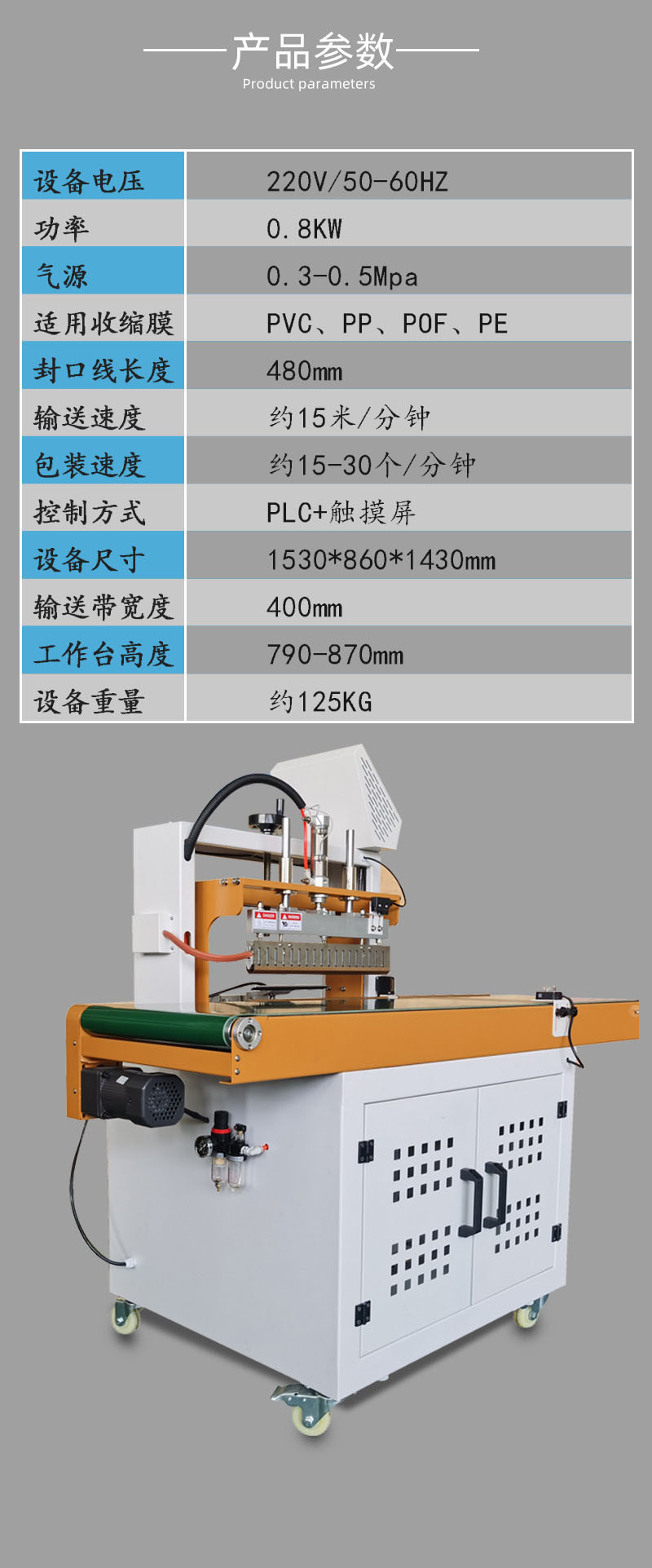 適用于OPP、POF、PE、PVC等各種收縮包裝材料連續(xù)封口機適用于所有塑料薄膜的封口及制袋,包括醫(yī)藥、農(nóng)藥、食品、日化、潤滑油等行業(yè)的鋁箔袋,塑料袋,復合袋等材料的理想封口,它是食品廠、化妝品廠、藥廠等單位的理想封口設(shè)備,產(chǎn)品特點 連續(xù)封口機適用于各類大小包裝的封口
