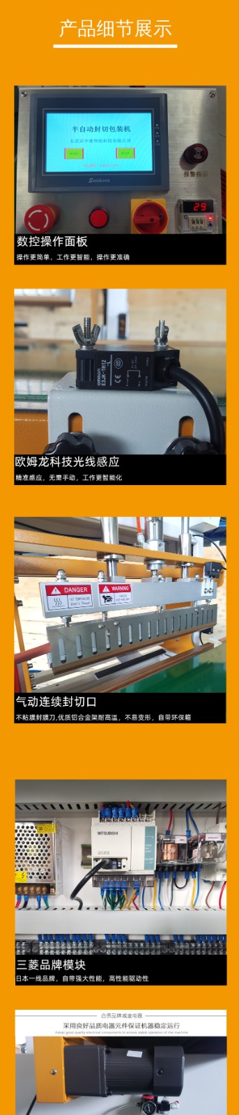 連續(xù)式封切機(jī)有立臥兩用封口之功能,適用于所有塑料薄膜的封口及制袋,是食品廠、化妝品廠、藥廠等單位的理想封口設(shè)備,可連續(xù)運(yùn)轉(zhuǎn),還可根據(jù)用戶需要打出日期、批號(hào)等
