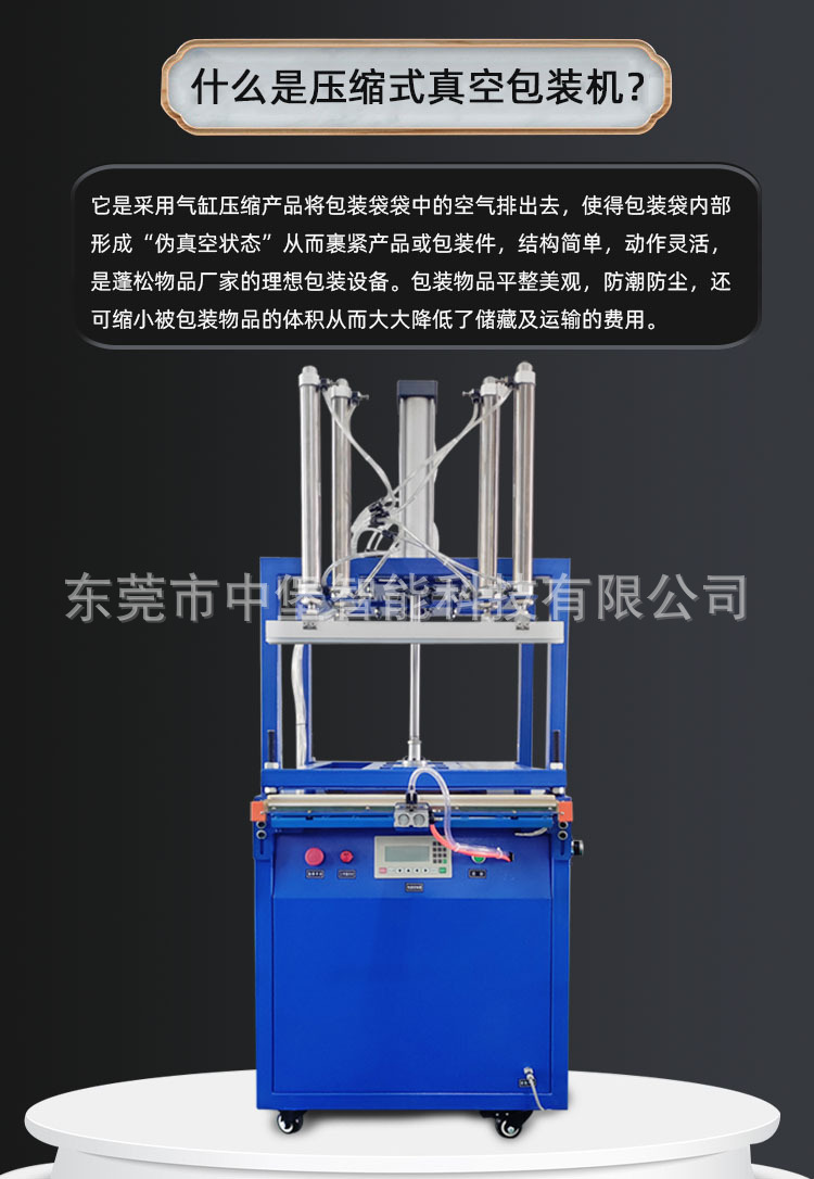 壓縮包裝機是一種用于減少物品體積和空間的包裝設備,?它通過不同的技術和原理,?如液壓、?熱縮、?真空等,?將物品壓縮以減小其體積,?從而節(jié)省存儲空間和運輸成本。?這種設備廣泛應用于各個行業(yè),?包括但不限于食品、?紡織、?日化、?農業(yè)等。?