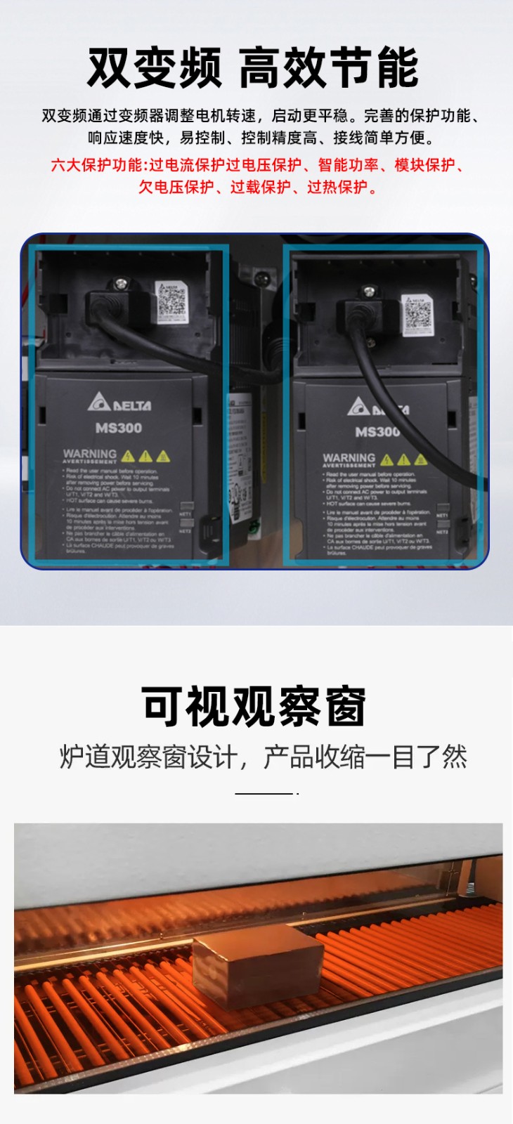 設備核心部件,采用垂直方向上下封切刀(區(qū)別于 “水平封切” 的橫向切割),可根據(jù)產品高度自動調整封切位置,適用于高度差異較大的產品(如瓶裝飲料、盒裝藥品);刀體通常帶 “防粘涂層”(如特氟龍),防止膜材高溫粘連,同時配備冷卻系統(tǒng),避免封切后膜邊變形。 - 熱收縮通道: