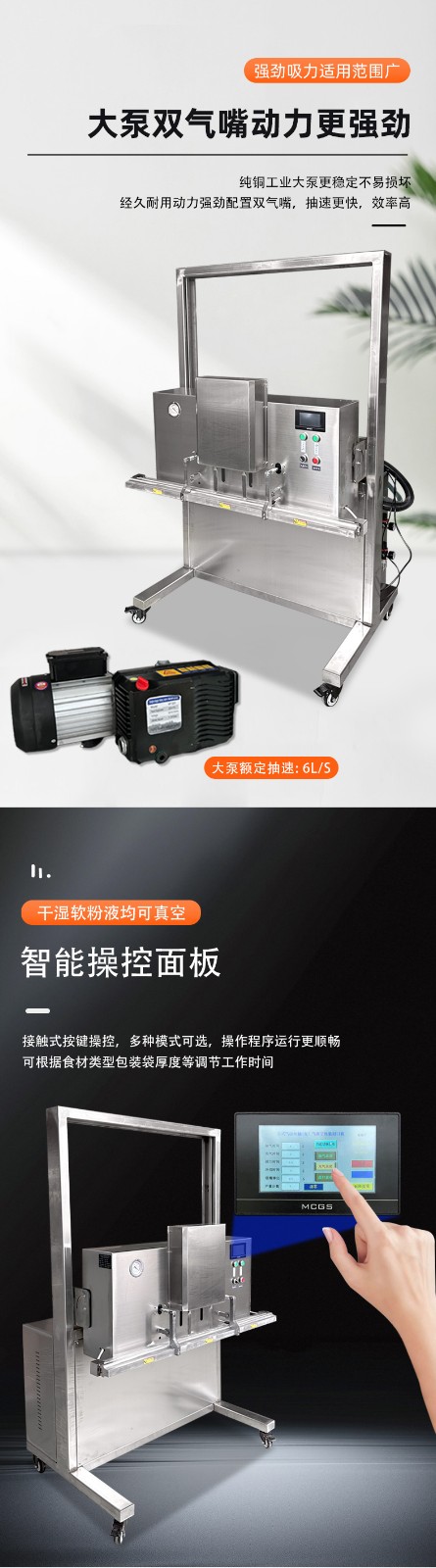 適用于需通過真空隔絕空氣、防止氧化變質(zhì),或通過充氣(如氮氣)維持口感的食品,尤其適配大份量 / 大尺寸食材:
