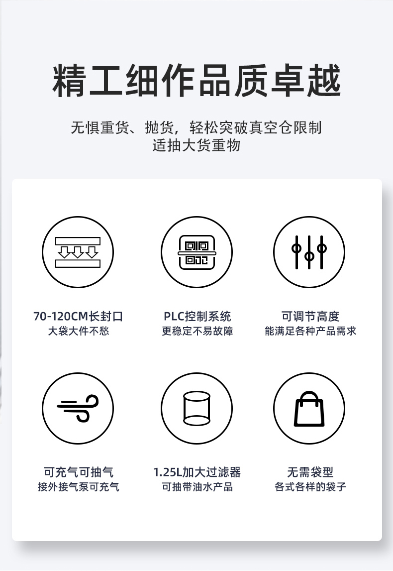 1200 型立式外抽真空包裝機憑借超大封口尺寸(1200mm 長)、外抽式無真空室限制、可兼顧真空 / 充氣包裝的核心優(yōu)勢,適用范圍覆蓋多個行業(yè),能滿足不同類型產(chǎn)品的保鮮、防護、減容需求,具體可分為以下幾大領(lǐng)域: