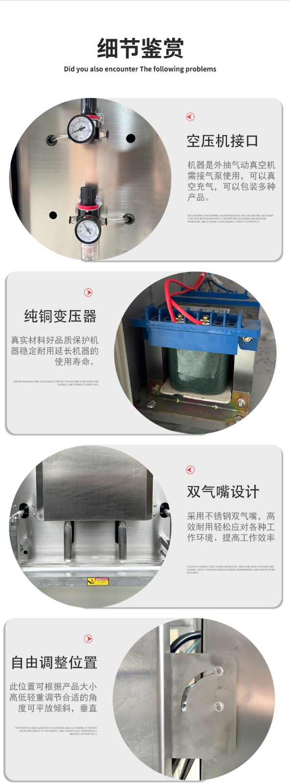 - 顆粒 / 粉末類:塑料顆粒(小批量)、橡膠顆粒、化工助劑(如抗氧劑、穩(wěn)定劑),真空后防止運輸中撒漏,且隔絕空氣中的雜質(zhì);