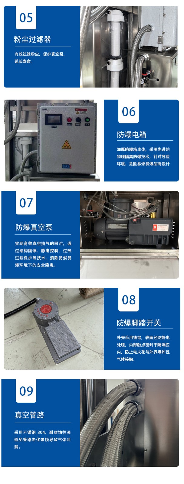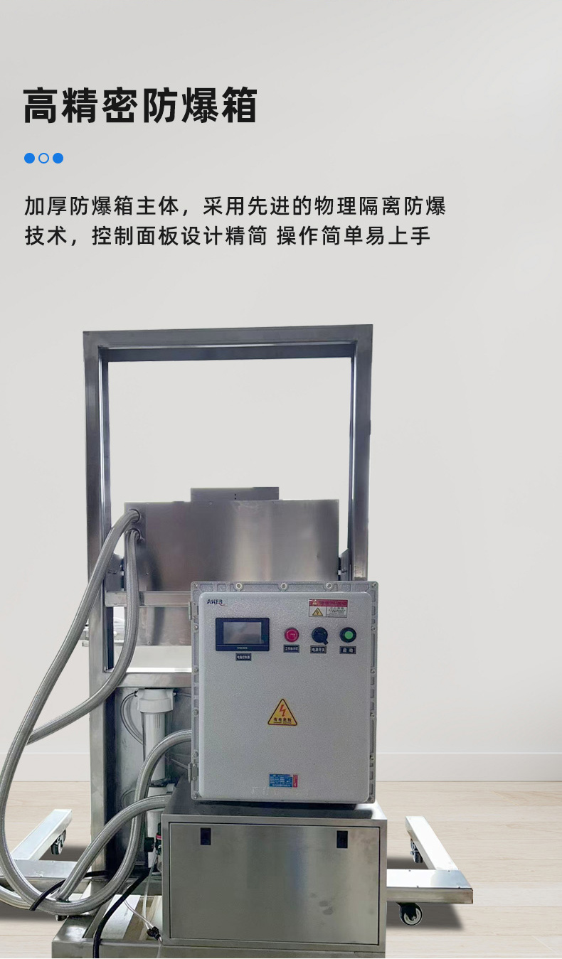 • 防爆性能優越:采用物理隔離防爆技術,嚴格選用防爆達標元件,電器箱、真空泵、熱封條等都經過特殊的防爆處理,能有效防止在操作過程中產生火花,避免爆炸等危險情況的發生2