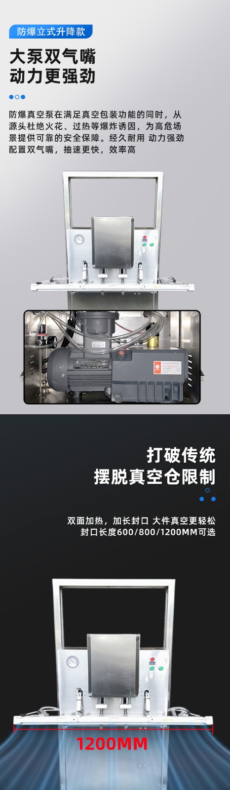 防爆真空包裝機液體顆粒粉末立式升降外抽防爆真空包裝封口機