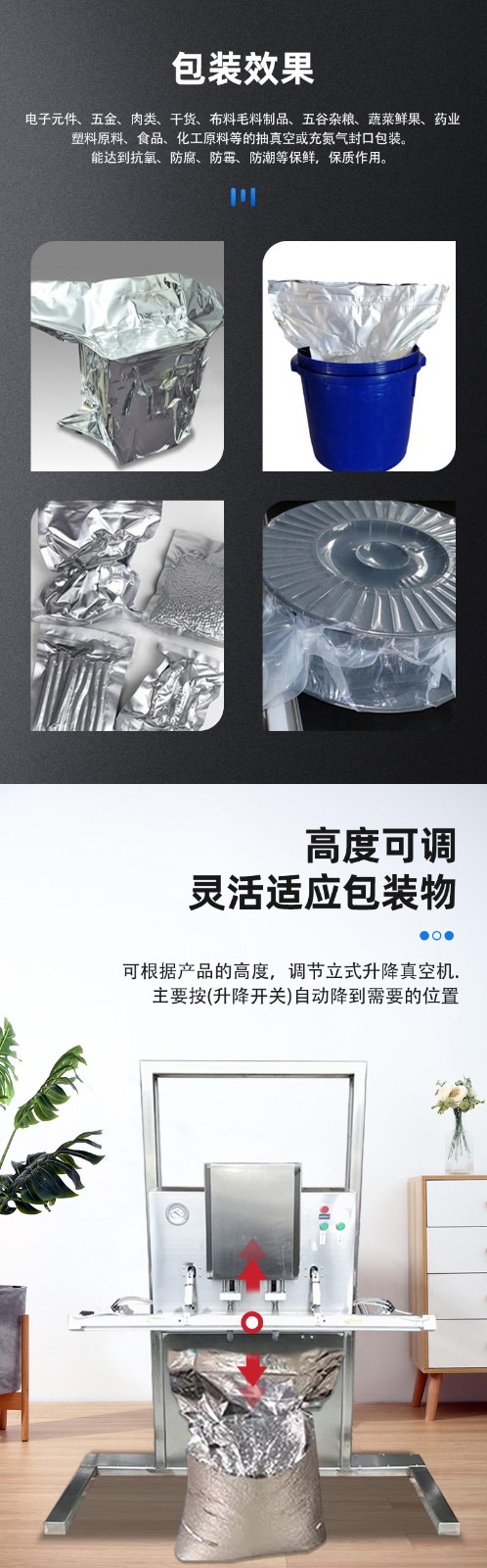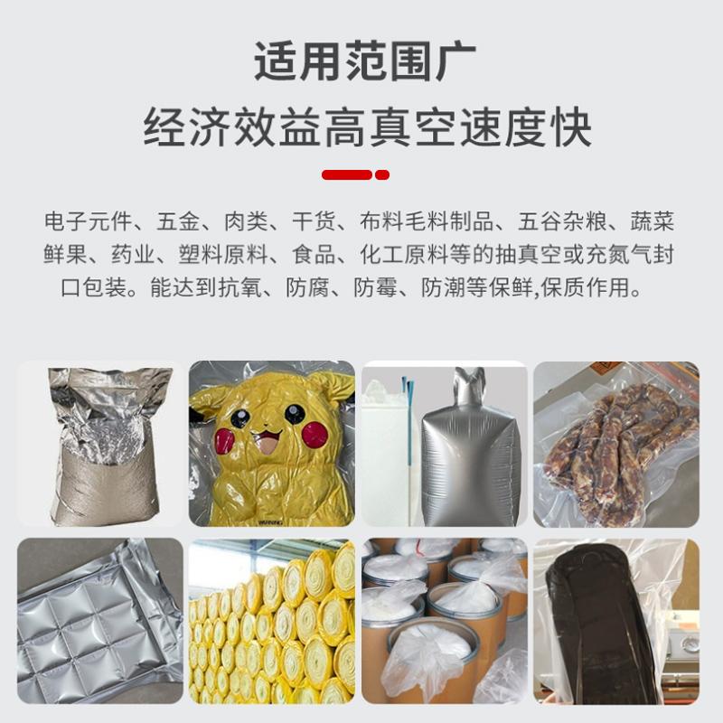 • 包裝效果好:能夠實現高效的抽真空和密封功能,使包裝內的物品處于真空狀態,有效防止物品受潮、受腐蝕氣體及鹽霧侵蝕,延長物品的保質期和使用壽命2
