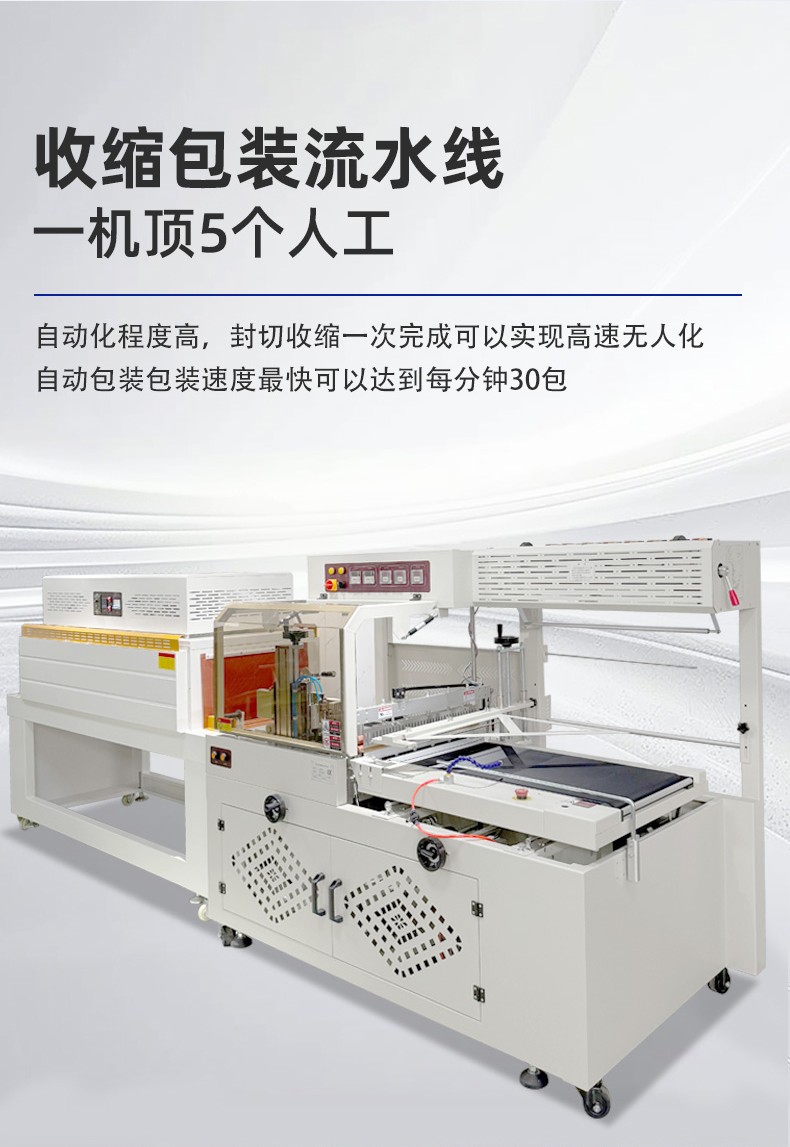 - 工作原理6:通常基于恒溫加熱技術(shù),先將收縮膜加熱至所需溫度,然后對已包裹產(chǎn)品的收縮膜進(jìn)行熱封切操作,再將完成封切的產(chǎn)品送入收縮爐內(nèi)加熱,使收縮膜收縮并緊密貼合產(chǎn)品,最后經(jīng)冷卻得到平整美觀的包裝效果。