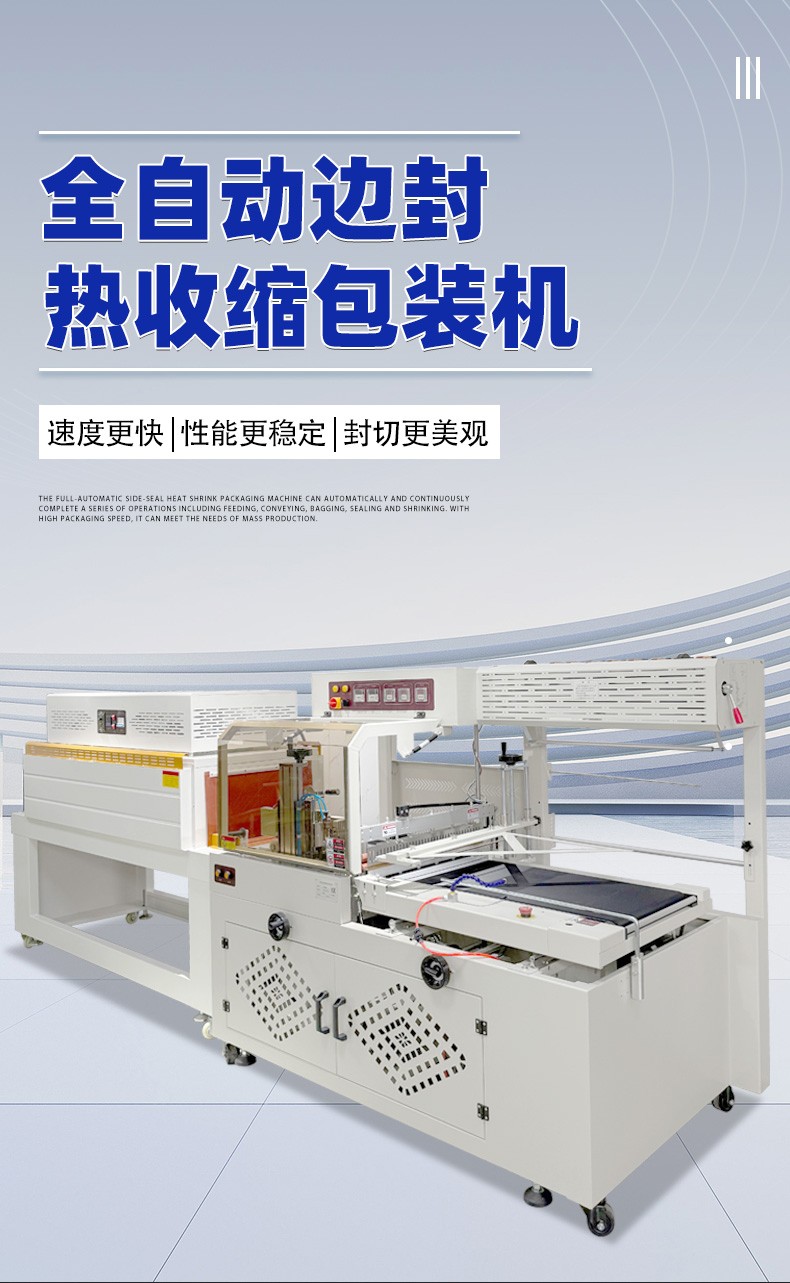 全自動封切熱收縮包裝機(jī)是一種高度自動化的包裝設(shè)備,主要用于對各類產(chǎn)品進(jìn)行熱收縮包裝,通過封切和熱收縮等操作,使包裝膜緊密貼合產(chǎn)品,達(dá)到保護(hù)和美觀的效果。以下是具體介紹: